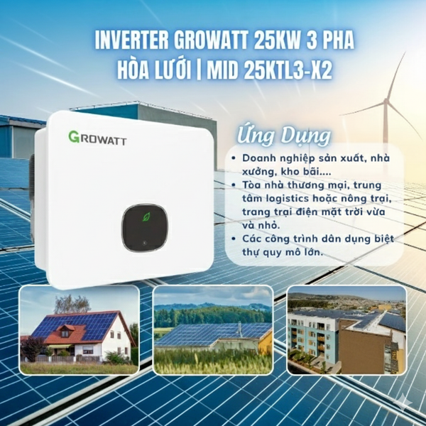 Inverter Growatt 25kW 3 Pha Hòa Lưới MID 25KTL3-X2