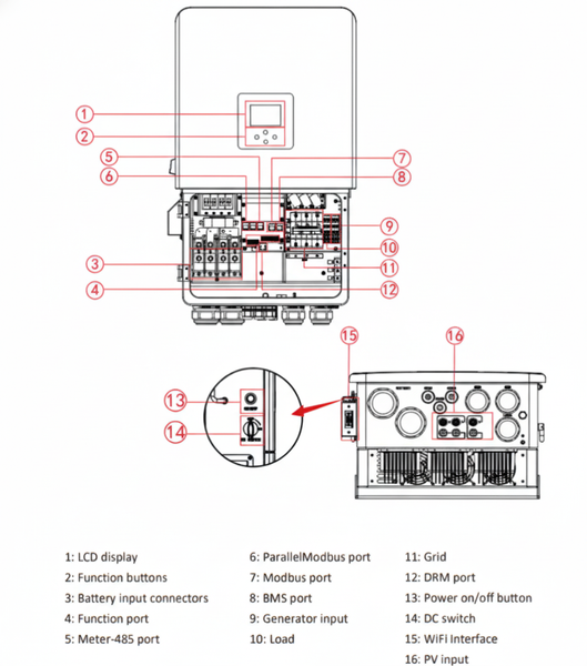 Nếu bạn cần một Inverter Hybrid 16 kW có khả năng sạc/xả lớn (300 A), tương thích nhiều loại pin và hỗ trợ mở rộng song song — SUN-16K-SG05LP3-EU-SM2 là lựa chọn tối ưu cho dự án dân dụng lớn, doanh nghiệp và trạm lưu trữ. Liên hệ Solar DH để được tư vấn cấu hình pin, thiết kế hệ thống và nhận báo giá chi tiết.