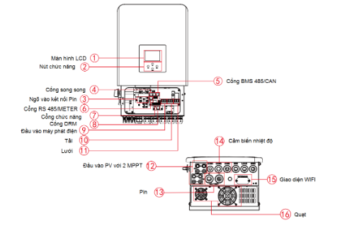 - Hỗ trợ máy phát Diesel: Cho phép sạc từ máy phát khi mất lưới.